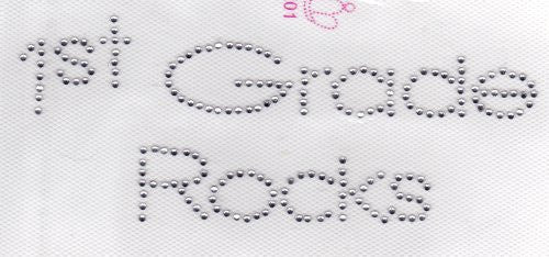 Beautiful and Easy to Apply IRON ON RHINESTONES (1st Grade Rocks), ss6 clear Rhinestones .Can be applied with household iron or commercial heat press. Approx Size 6" x 2.75"