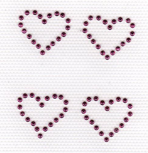 4 Mini Hearts Iron On Hot Fix rhinestuds Transfer -- Hot Pink
