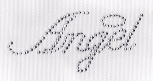Beautiful and Easy to Apply IRON ON RHINESTONES (Angel ), ss6 , ss10 Clear Rhinestones. Can be applied with household iron or commercial heat press. Approx Size 5" x 2.5"