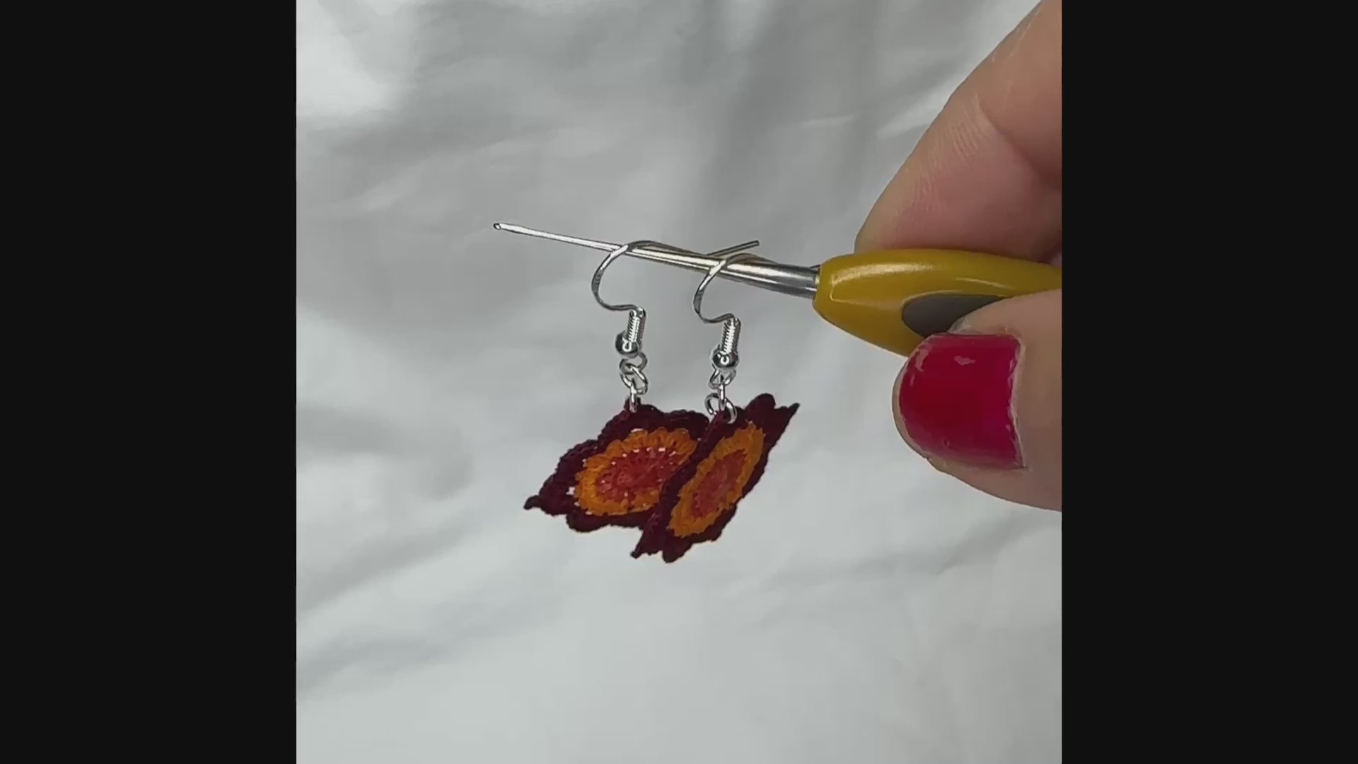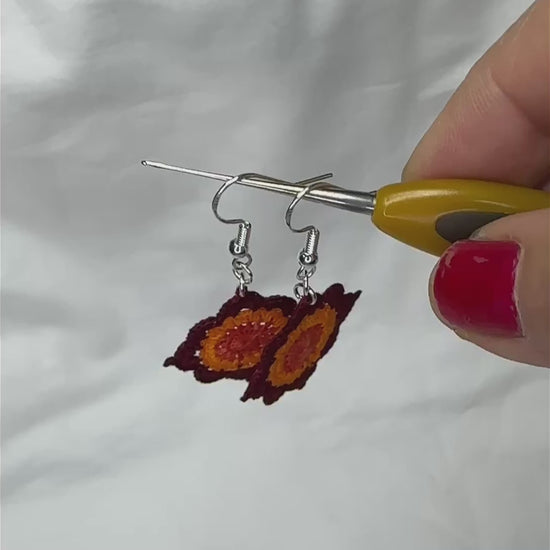 Bring the cozy spirit of autumn to your look with these handmade crochet sunburst earrings. Featuring rich fall tones and intricate threadwork, these lightweight dangle earrings are perfect for lovers of boho and artisanal fashion. Each pair is carefully handcrafted, making every piece unique. Add a touch of warmth and handmade charm to your outfit today!