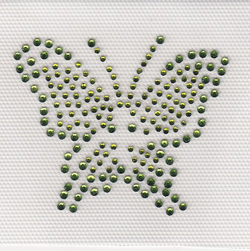 Beautiful and Easy to Apply IRON ON RHINESTONES Butterfly ss6 and ss 10 Green Rhinestones. Can be applied with household iron or commercial heat press. Approx Size 2 3/4" 2 1/4 "