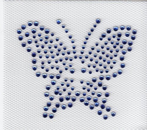 Beautiful and Easy to Apply IRON ON RHINESTONES Butterfly ss6 and ss 10 Sappire Rhinestones. Can be applied with household iron or commercial heat press. Approx Size 2 3/4" 2 1/4 "