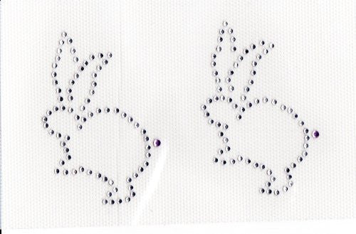 Beautiful and Easy to Apply IRON ON RHINESTONES (easter bunny), ss6 , ss 10 Rhinestones. Can be applied with household iron or commercial heat press. Approx Size 2.75" X 2" each