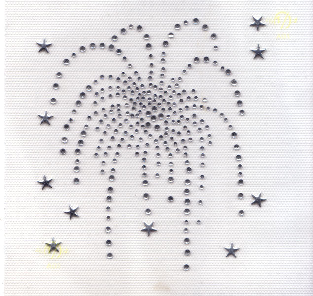 Beautiful and Easy to Apply IRON ON RHINESTONES Fireworks ss6 and ss 10 Rhinestones. Can be applied with household iron or commercial heat press. Approx Size 5" x 5"