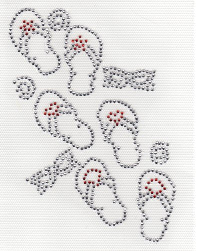 Beautiful and Easy to Apply IRON ON RHINESTONES flip flops , ss6 clear and red Rhinestones. Can be applied with household iron or commercial heat press. Approx Size 7" x 5" .