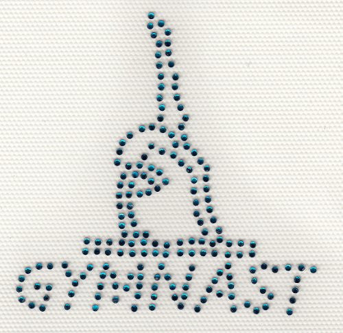 Beautiful and Easy to Apply IRON ON RHINESTONES Gymnastic girl , ss6 Blue Rhinestones. Can be applied with household iron or commercial heat press. Approx Size 3 1/2 " 3 1/2"