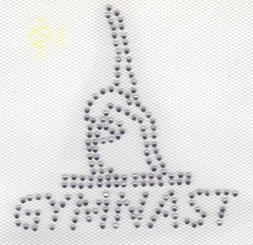 Beautiful and Easy to Apply IRON ON RHINESTONES Gymnastic girl , ss6 Clear Rhinestones. Can be applied with household iron or commercial heat press. Approx Size 3 1/2 " 3 1/2"