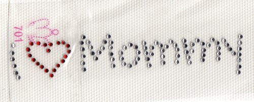 Beautiful and Easy to Apply IRON ON RHINESTONES (I /heart/ Mommy), ss6 Clear and Red Rhinestones. Can be applied with household iron or commercial heat press. Approx Size 4.5" x 0.75"