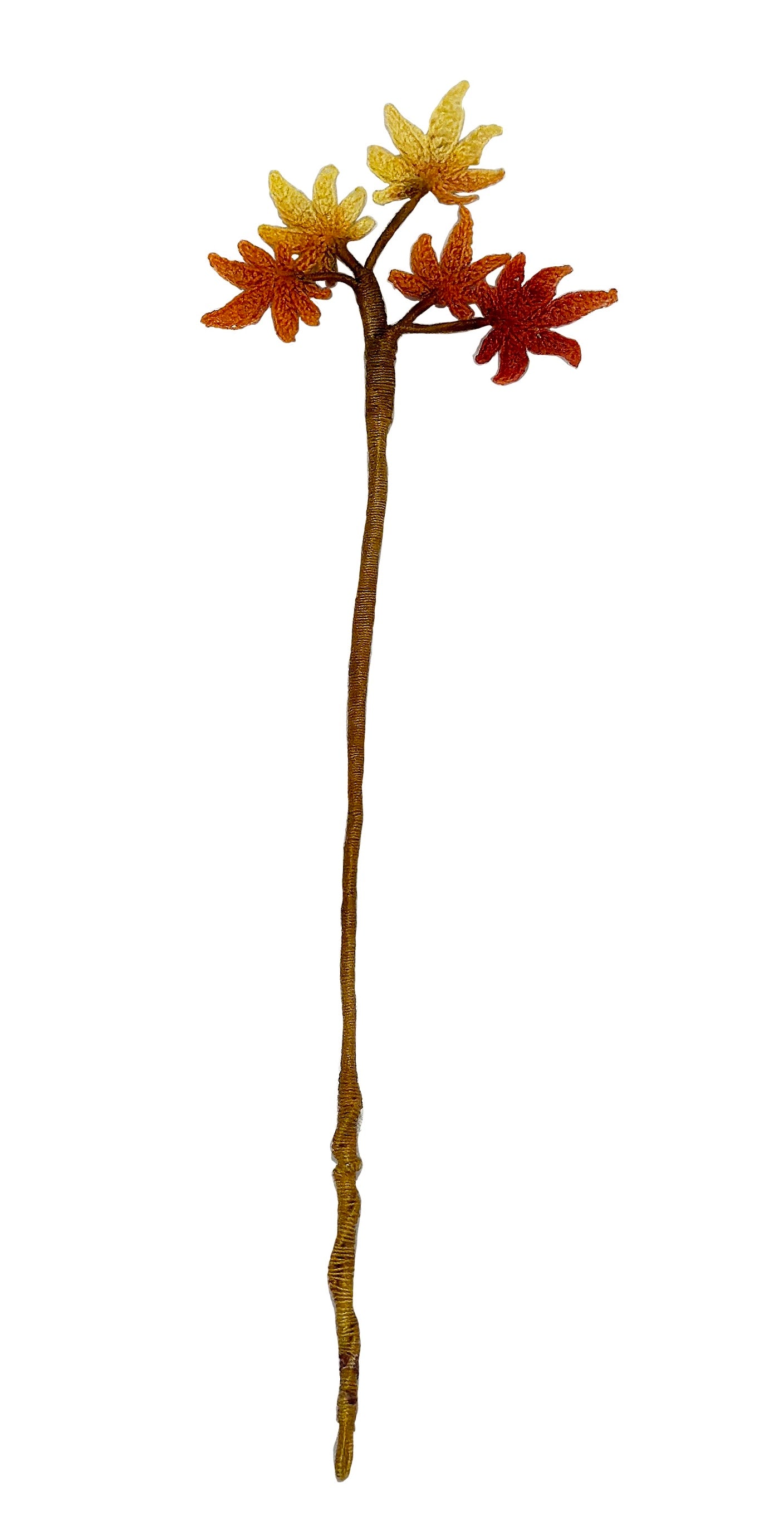 This handmade micro crochet maple leaf bookmark brings the gentle touch of autumn to your reading moments. Each leaf is skillfully crocheted with fine thread in warm fall tones — from golden yellow to burnt orange and deep red. Perfect for book lovers, collectors of mini crochet art, or as a cozy seasonal gift.