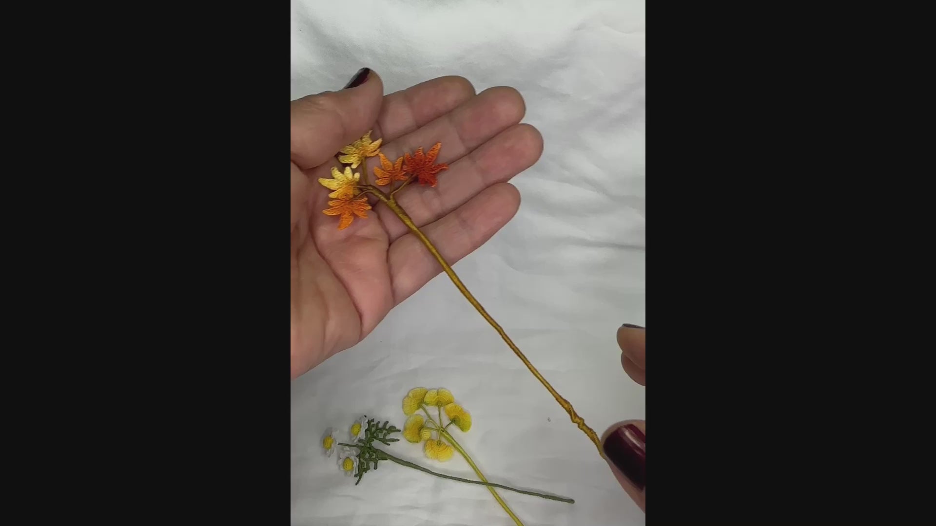 - Materials: fine crochet thread, wrapped wire stem