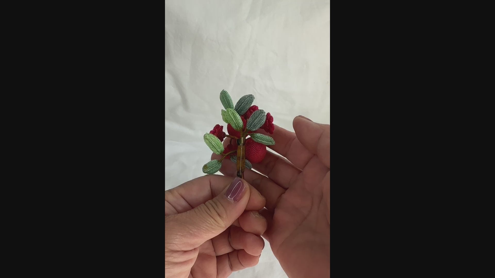 - 🌸 Handcrafted Detail: Each brooch is delicately crocheted and dyed by hand, creating a unique pomegranate design with soft natural colors.