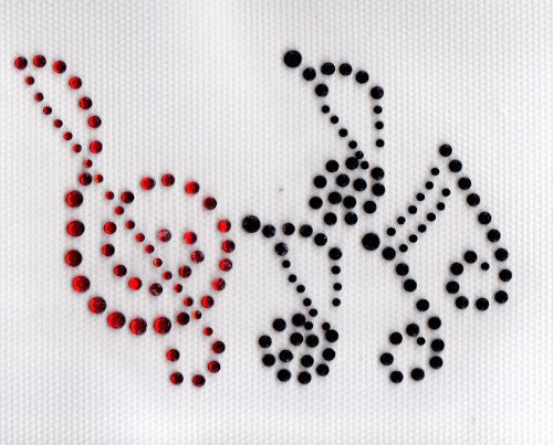 Beautiful and Easy to Apply IRON ON RHINESTONES Music Notes ss6, ss 10, ss16 Red and Black Rhinestones. Can be applied with household iron or commercial heat press. Approx Size 4" x 3"