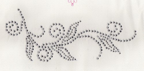 Beautiful and Easy to Apply IRON ON RHINESTONES Neckline, Right - hand side, ss6 and ss 10 Clear Rhinestones. Can be applied with household iron or commercial heat press. Approx Size 8" x 4"