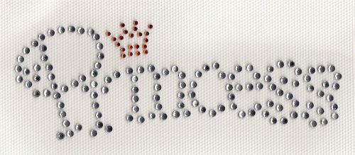 Beautiful and Easy to Apply IRON ON RHINESTONES (Princess with small Orange crown), ss6 and ss 12 Clear and Red Rhinestones. Can be applied with household iron or commercial heat press. Approx Size 6" x 4.25"