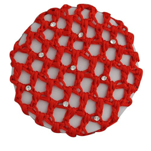 Red Bun Cover with 9 Rhinestones 3 3/4"