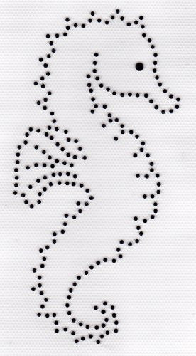 Beautiful and Easy to Apply IRON ON RHINESTONES Sea Horse , ss 6 Black Rhinestones. Can be applied with household iron or commercial heat press. Approx Size 3" x 6" .