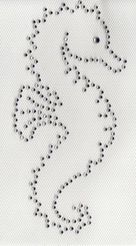 Beautiful and Easy to Apply IRON ON RHINESTONES Sea Horse , ss 6 clear Rhinestones. Can be applied with household iron or commercial heat press. Approx Size 3" x 6" . Also Available in Lt Blue ().