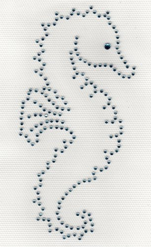 Beautiful and Easy to Apply IRON ON RHINESTONES Sea Horse , ss 6 Lt Blue Rhinestones. Can be applied with household iron or commercial heat press. Approx Size 3" x 6" . Also Available in Clear ().