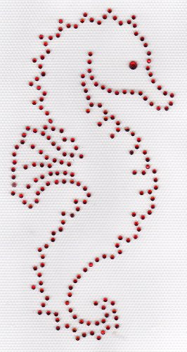 Beautiful and Easy to Apply IRON ON RHINESTONES Sea Horse , ss 6 Red Rhinestones. Can be applied with household iron or commercial heat press. Approx Size 3" x 6" .