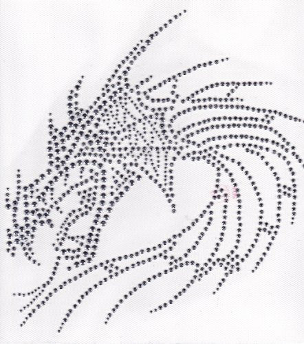Beautiful and Easy to Apply IRON ON Rhinestuds, Silver Dragon, ss6, ss10 and ss16 Silver Rhinestuds. Can be applied with household iron or commercial heat press. Approx Size 8.75" x 8.5" each