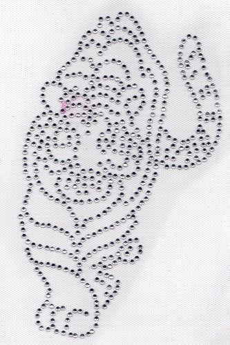 Beautiful and Easy to Apply IRON ON RHINESTONES Tiger, ss 10 Clear Rhinestones. Can be applied with household iron or commercial heat press. Approx Size 8.5" x 5.25"