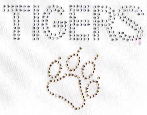 Tigers/ Paw Iron On Hot Fix Rhinestone Transfer -- Clear / Gold