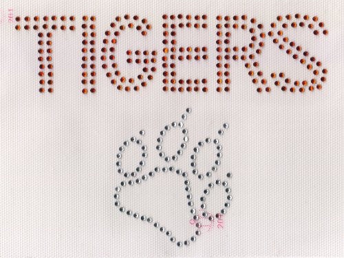 Beautiful and Easy to Apply IRON ON RHINESTONES Tigers / paw , ss 10 Orange and Clear Rhinestones. Can be applied with household iron or commercial heat press. Approx Size 6.5" x 5".