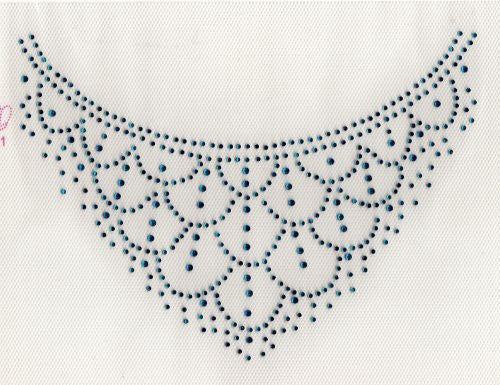 Beautiful and Easy to Apply IRON ON RHINESTONES NeckLine ss6 and ss 10 Blue Rhinestones. Can be applied with household iron or commercial heat press. Approx Size 7.25" x 5"