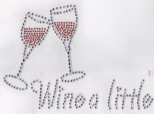 Wine a little Iron On Hot Fix Transfer Rhinestone -- Clear and Red
