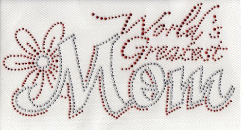 Beautiful and Easy to Apply IRON ON RHINESTONES (World's Greatest Mom), ss6 and ss 10 Clear and Red Rhinestones. Can be applied with household iron or commercial heat press. Approx Size 8.75" x 4.75"