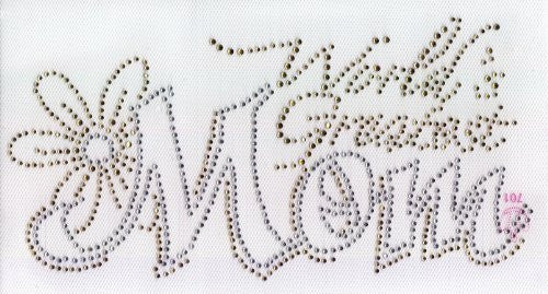 Beautiful and Easy to Apply IRON ON RHINESTONES (World's Greatest Mom), ss6 and ss 10 Clear and Gold Rhinestones. Can be applied with household iron or commercial heat press. Approx Size 8.75" x 4.75"